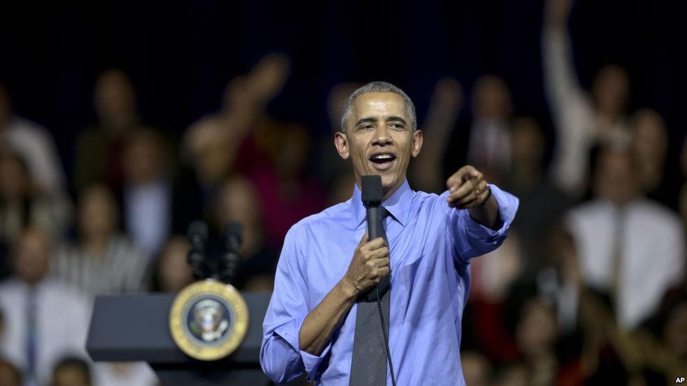 TT Obama công kích Donald Trump trong khi bà Clinton phải ở nhà dưỡng bệnh