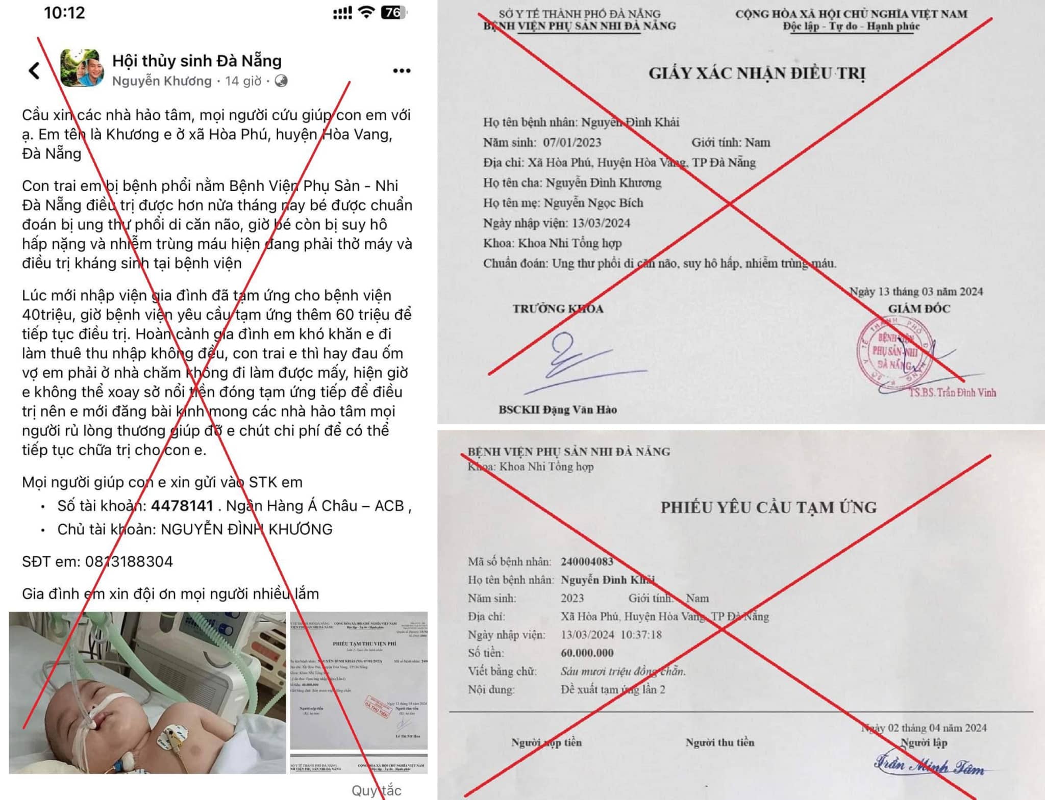 Bệnh viện Phụ sản - Nhi Đà Nẵng khẳng định thông tin và hình ảnh bé trai bị chẩn đoán ung thư phổi di căn não được đăng để kêu gọi quyên góp là giả…