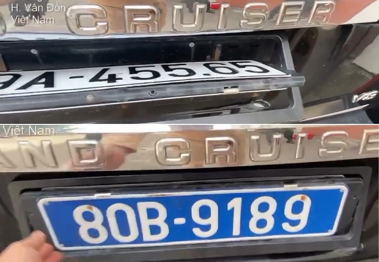 Ông N.Đ.H (Hà Nội) sử dụng xe ô tô Land Cruiser VX mang BKS 29A-455.65, lật mặt sau là biển số xanh 80B-9189.