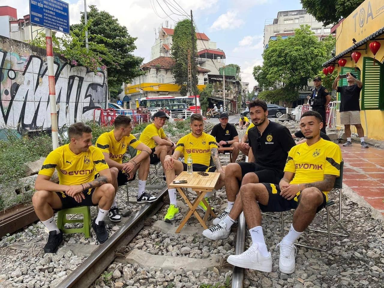 Quán cà phê để dàn cầu thủ Dortmund ngồi check-in trên đường ray sẽ bị phạt