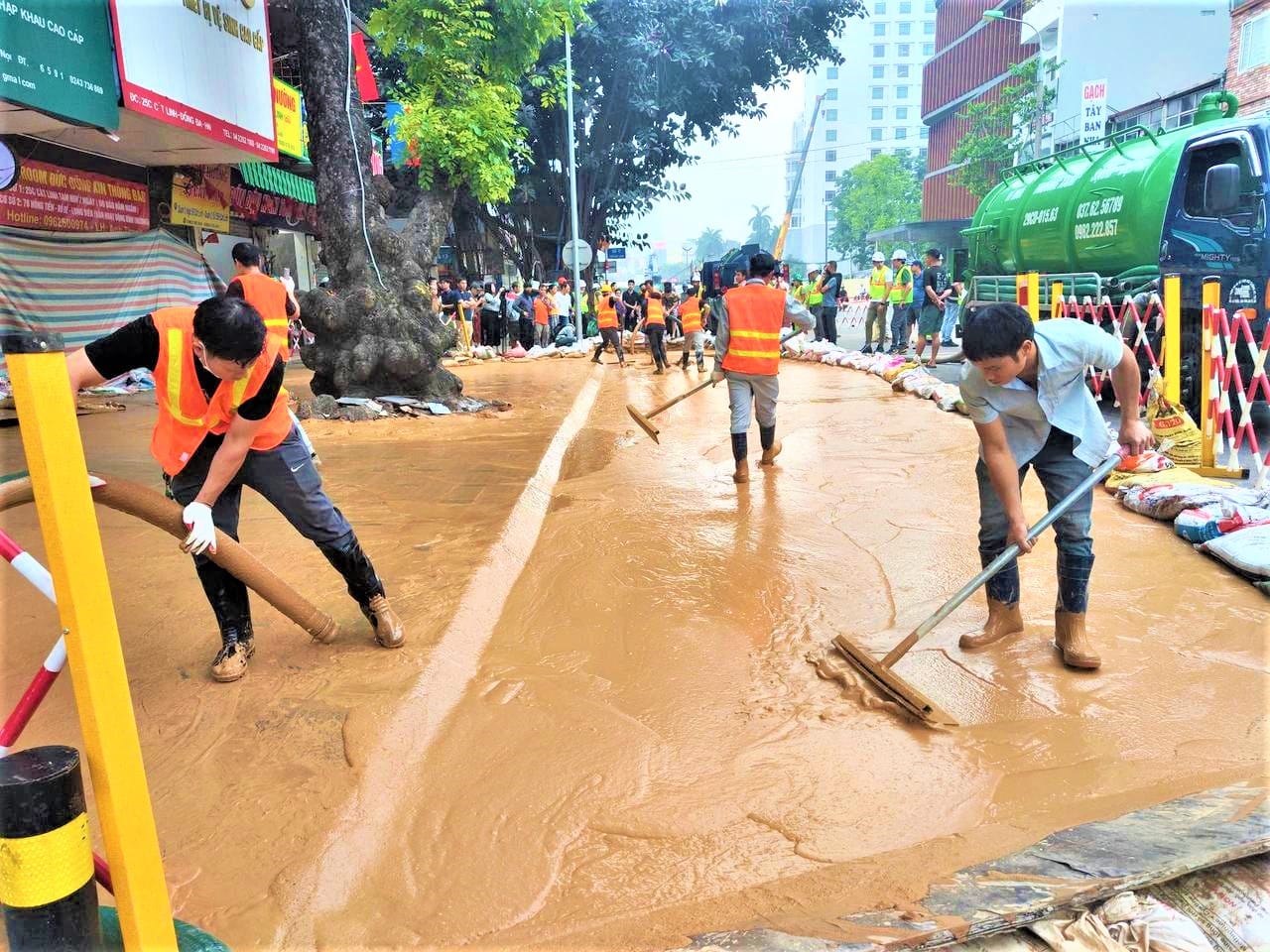 Sự cố bùn lỏng phun trào tại công trường metro Nhổn - ga Hà Nội khiến ngõ Núi Trúc bị ngập, ảnh hưởng đến giao thông khu vực.