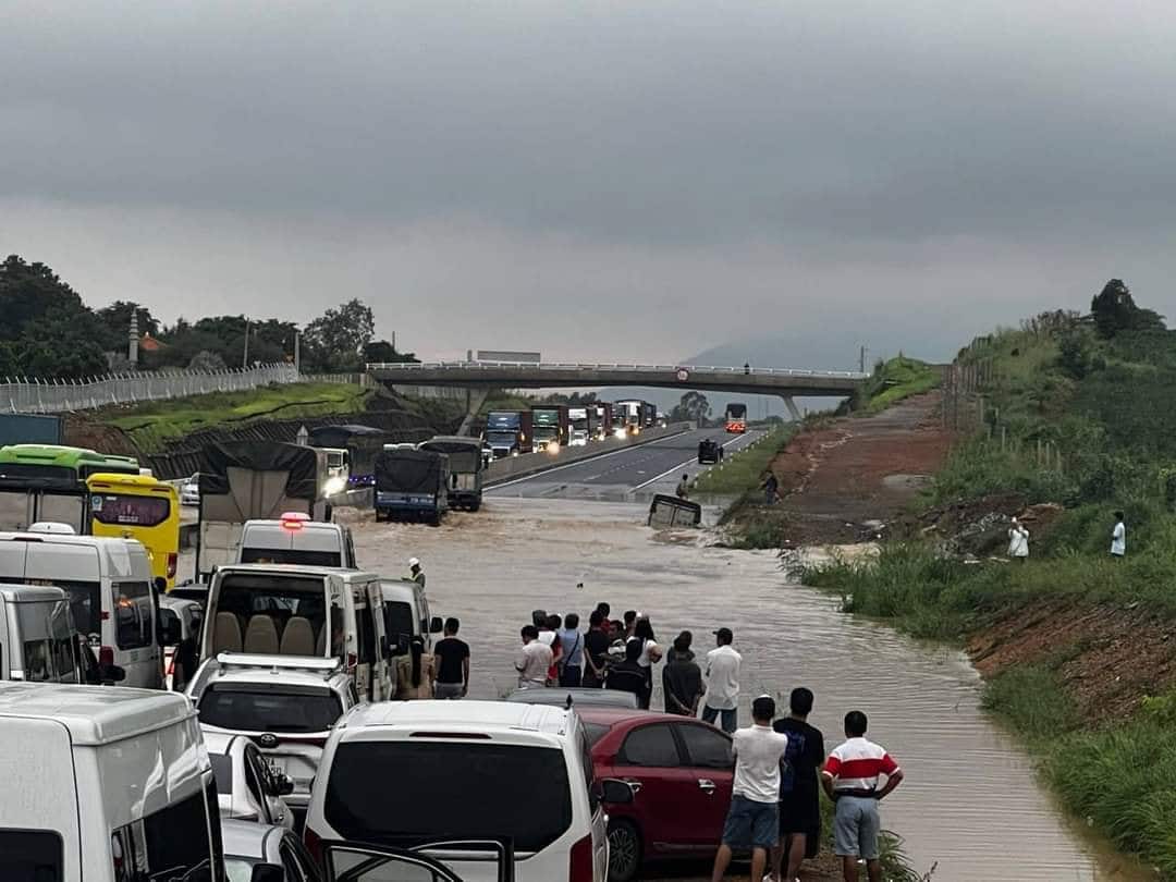 Khoảng 4h30 ngày 29/7, tại Km 25+419 với chiều dài 100m thuộc đường cao tốc Phan Thiết - Dầu Giây bị ngập, điểm ngập sâu nhất khoảng 70cm, xe cộ không thể lưu thông được.