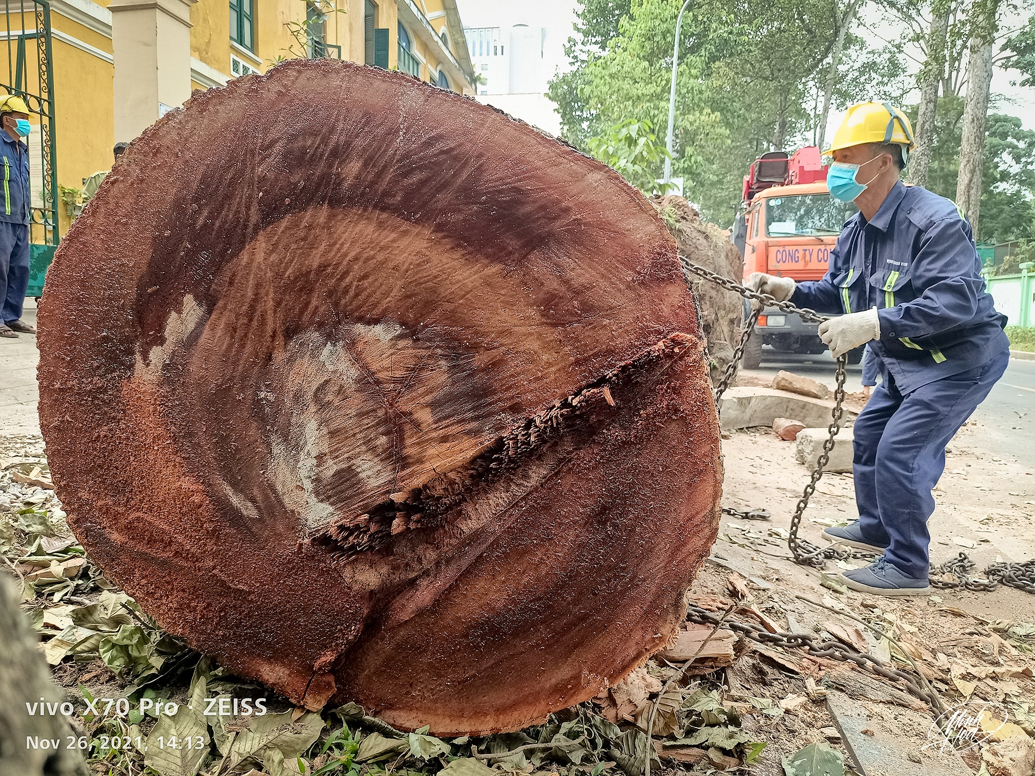 Trưa 26/11, 3 cây dầu cổ thụ trên đường Nguyễn Bỉnh Khiêm (Q.1, TP.HCM) bị cưa hạ, cắt rễ, phân khúc thân cây khiến nhiều người sửng sốt.