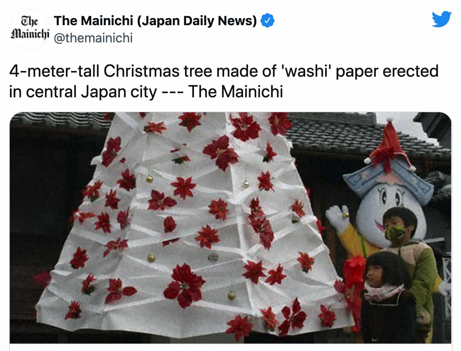 Cây thông Noel bằng giấy washi cao 4m thu hút du khách tại Nhật Bản