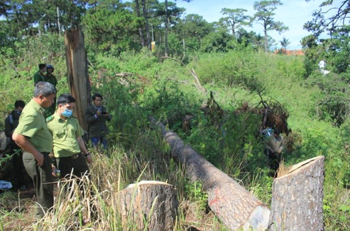 Thông cổ thụ bị triệt hạ trên ‘đất vàng’ của con trai cựu Bí thư tỉnh Lâm Đồng