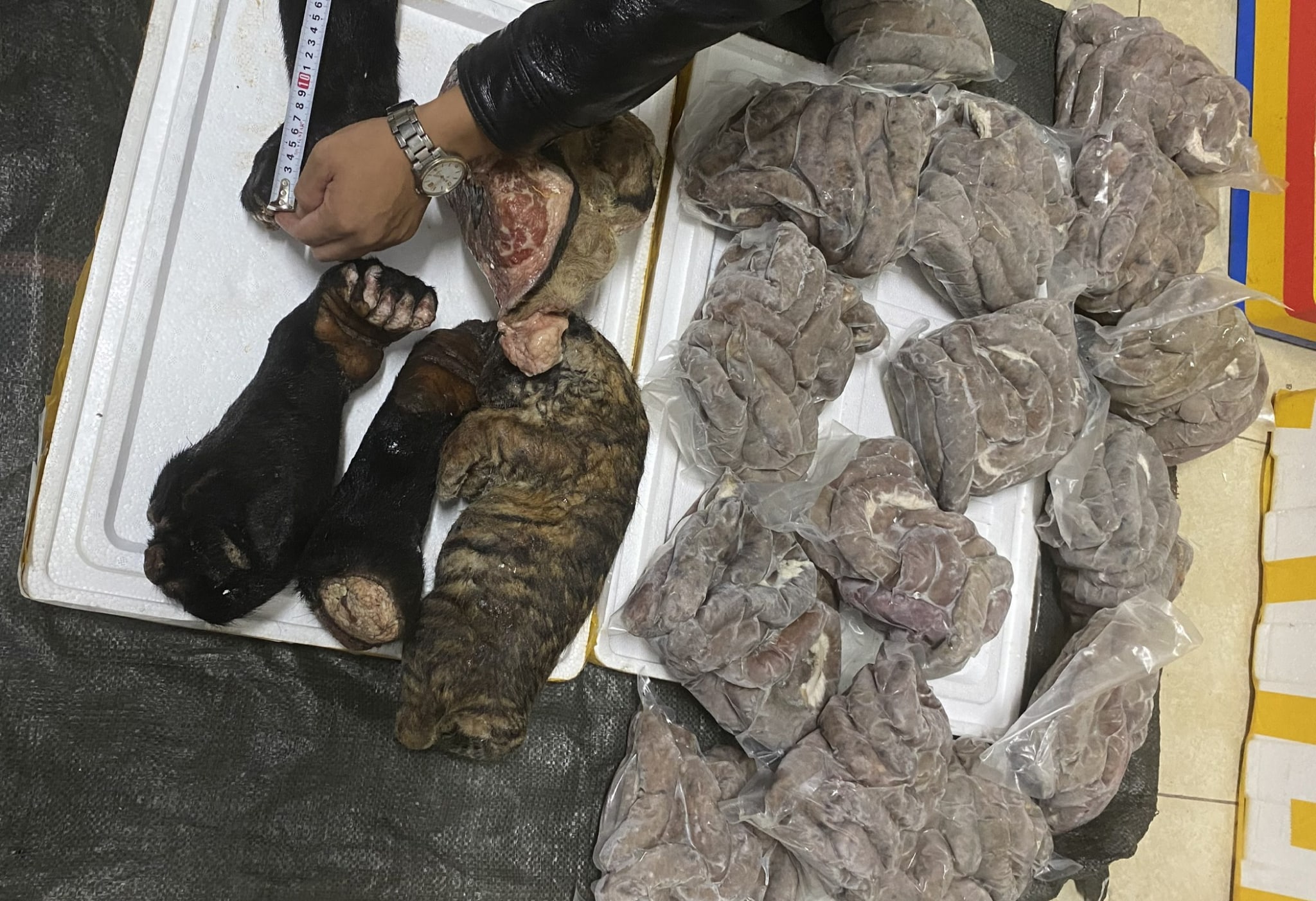 Gần 10 kg thịt hổ, chân gấu, xác hổ con bị phát hiện trên xe khách Bắc-Nam