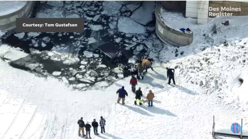 Chàng trai cứu cụ già mắc kẹt trong ô tô dưới hồ băng