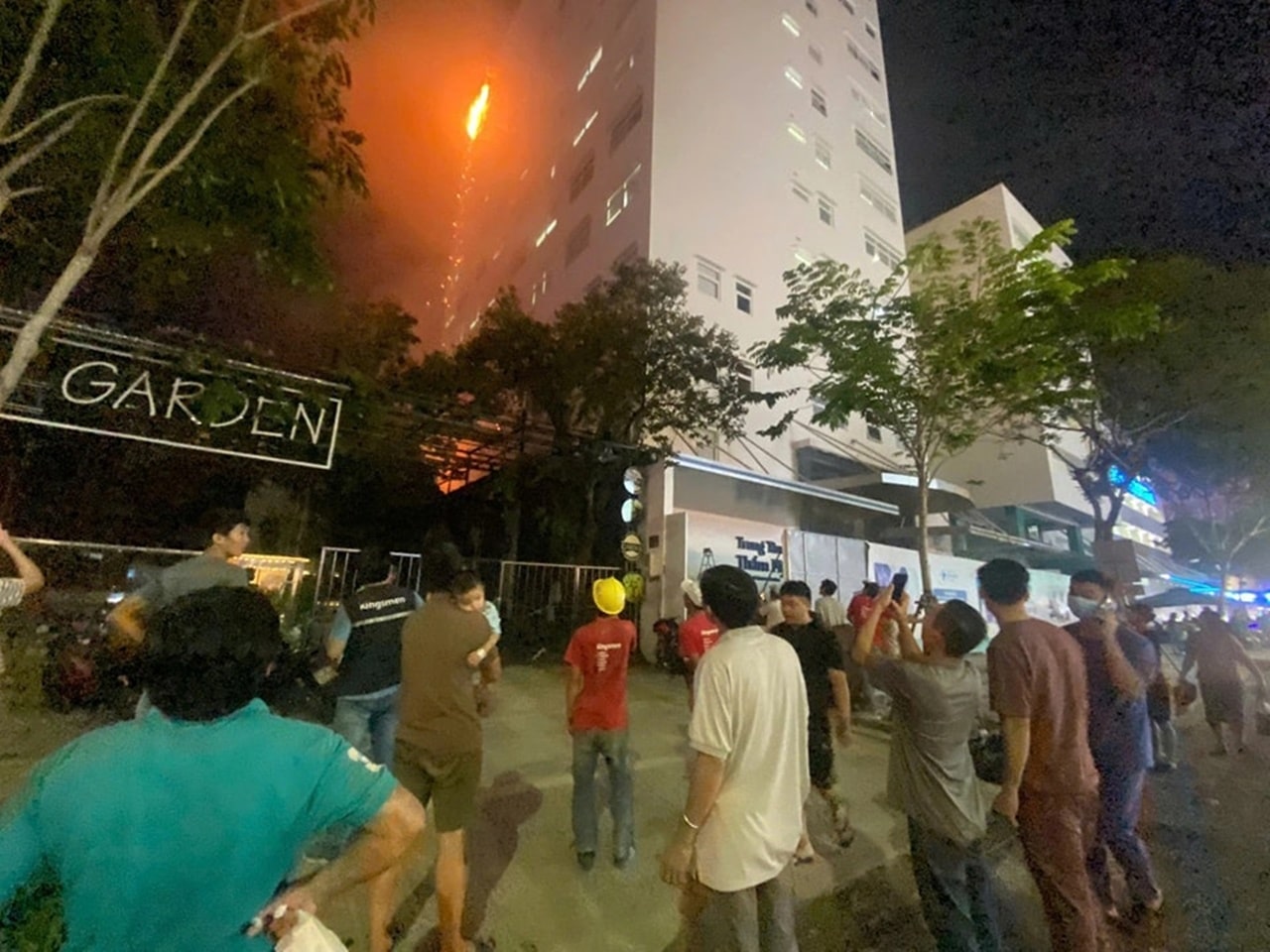 Lửa bốc dữ dội ở bảng hiệu bên ngoài tòa nhà của Bệnh viện Hoàn Mỹ Đà Nẵng khiến một số bệnh nhân, người nhà và các nhân viên y tế tháo chạy.