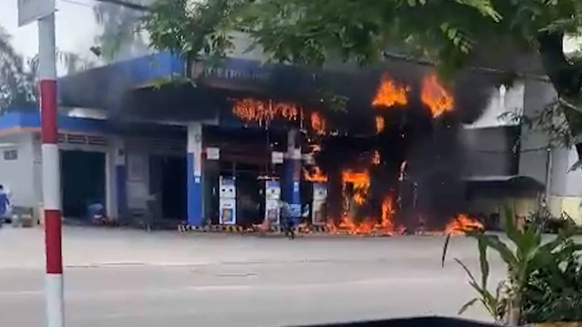 Một vụ cháy lớn đã bao trùm cây xăng trên đường Trần Hưng Đạo, TP Quy Nhơn do khách vứt đầu thuốc lá xuống đất