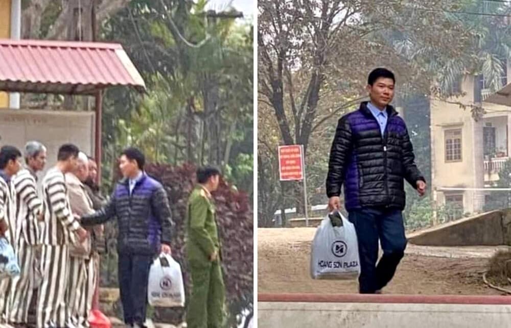 Hình ảnh bác sĩ Hoàng Công Lương cầm hành lý rời khỏi trại giam sau gần 2 năm sau bản án do TAND tỉnh Hoà Bình vừa được ghi lại.