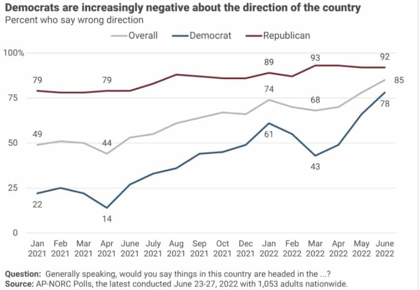 Theo một cuộc thăm dò mới, gần 85% người Mỹ trưởng thành cảm thấy đất nước đang đi sai hướng dưới thời TT Joe Biden.