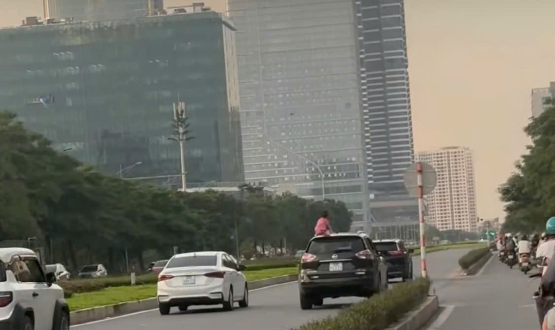 Để con gái ngồi trên nóc ô tô đang chạy, người mẹ bị phạt 5 triệu đồng