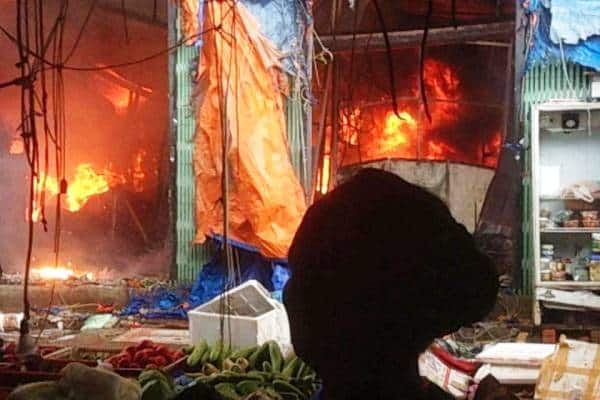Khu vực bên trong chợ rộng khoảng hơn 1.000 m2, chứa tài sản của người dân đã bị thiêu rụi.