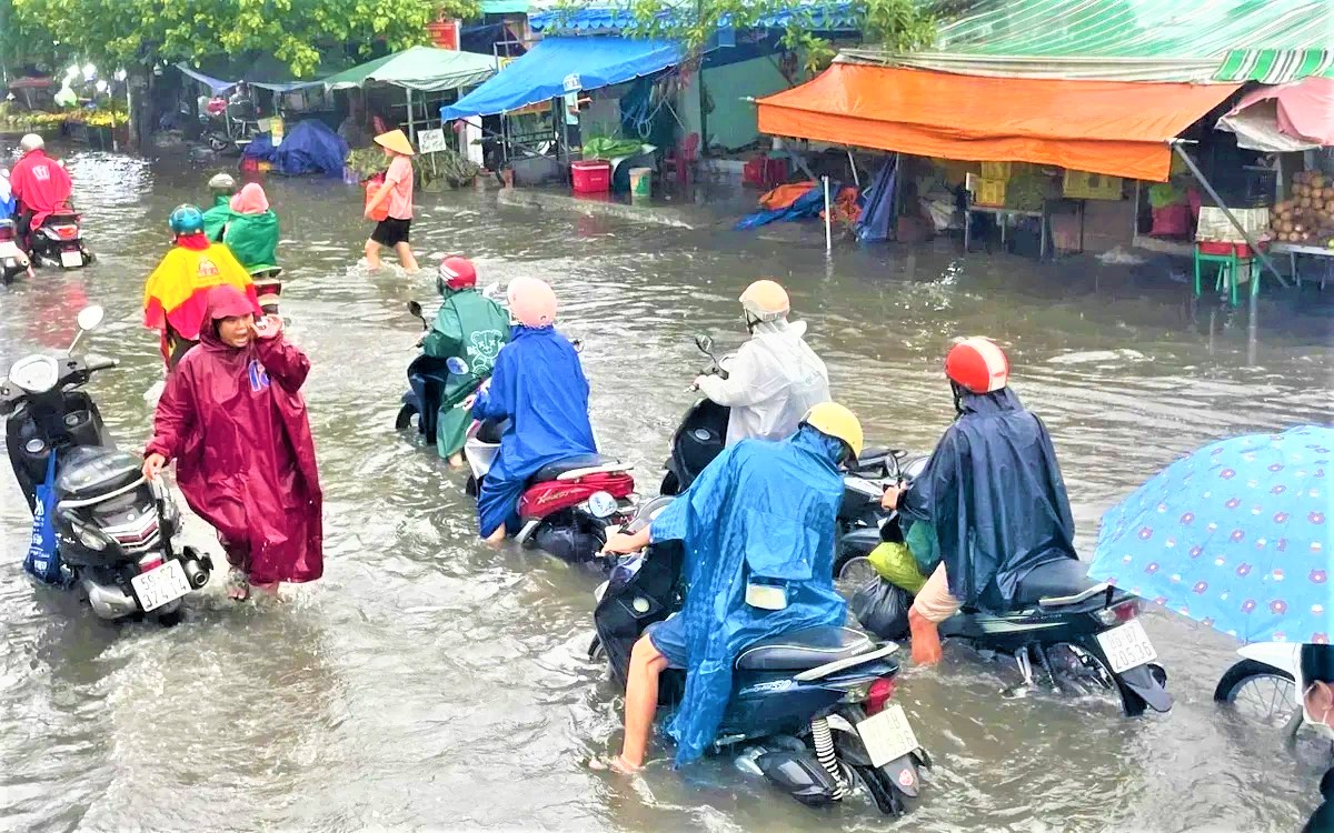 Sau cơn mưa lớn kéo dài từ sáng đến chiều tối ngày 27/9, cả vùng nông thôn và thành phố Cà Mau đều ngập tràn nước.