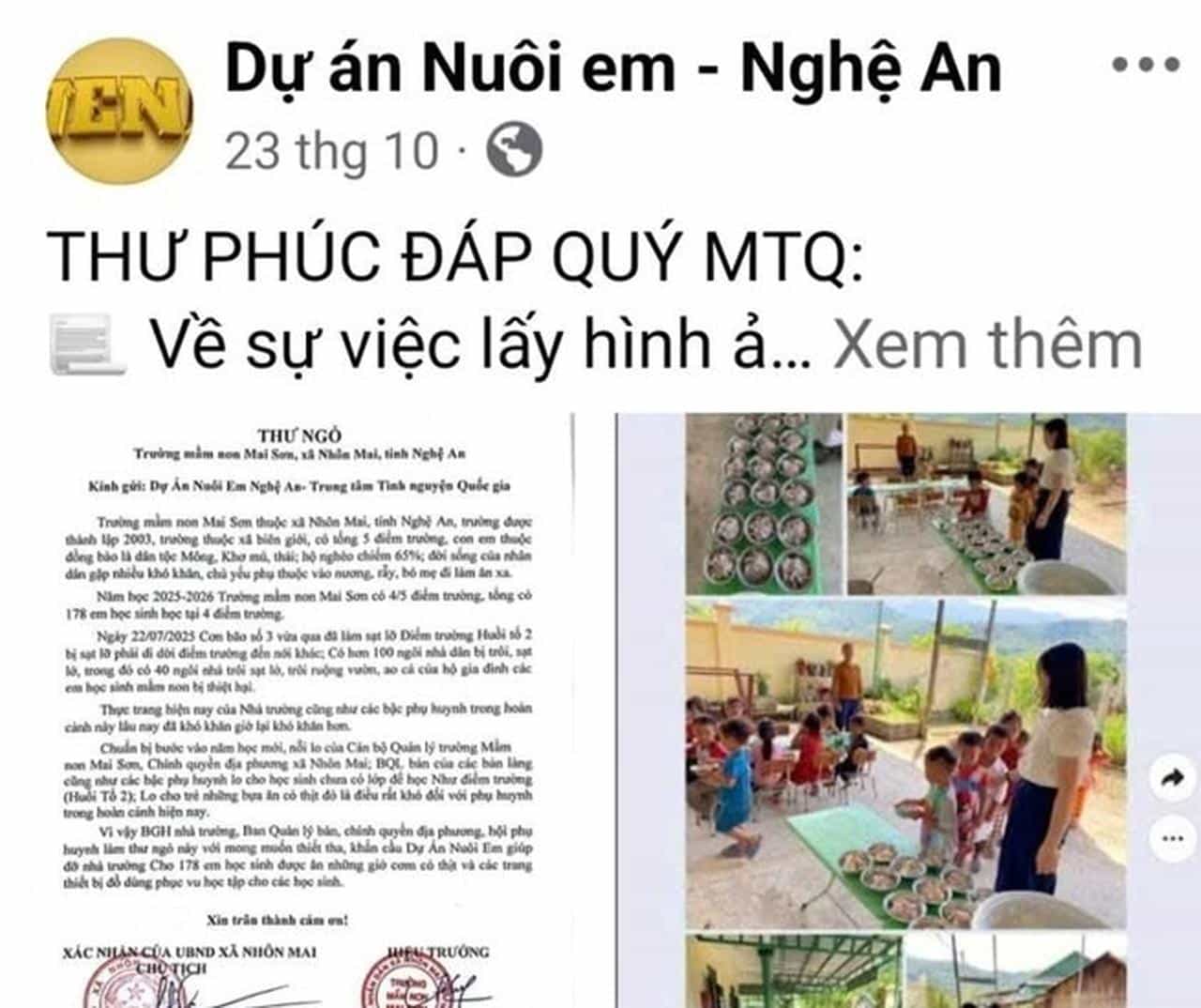 Công an Nghệ An xác minh dự án thiện nguyện Nuôi em về tính minh bạch tài chính