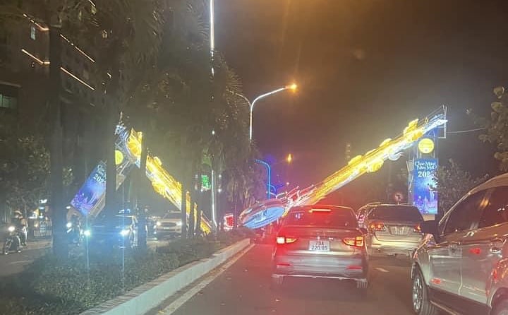 Nha Trang: Cổng chào năm mới trên đường Trần Phú bất ngờ đổ sập