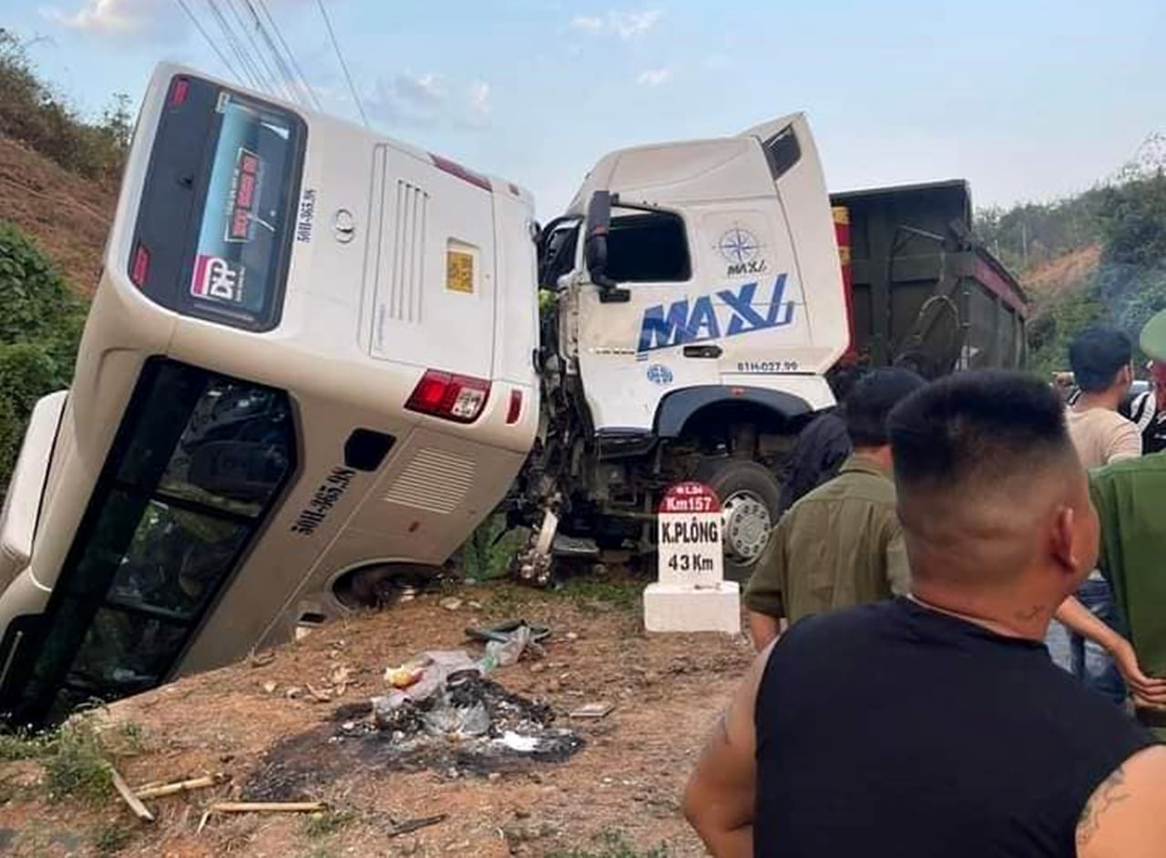 Đoàn cán bộ, nhân viên Cục Quản lý thị trường TP.HCM gặp tai nạn nghiêm trọng khi chiếc xe chở đoàn đi du lịch Măng Đen va chạm với xe đầu kéo trên đường.