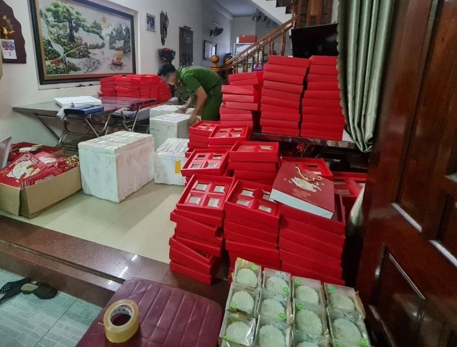 Gần 1.400 bánh trung thu bị nghi ngờ về chất lượng được phát hiện vào ngày 20/9, đề ngày sản xuất ngày 24/9, đang chuẩn bị được đưa đi tiêu thụ.