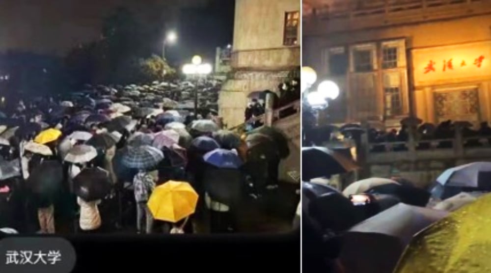 Vào tối ngày 4/12, đông đảo sinh viên Đại học Vũ Hán đã tập trung trong khuôn viên trường để biểu tình.