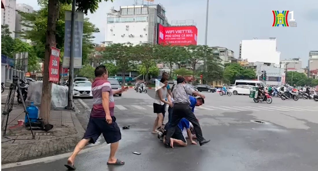 Chuẩn bị ghi hình việc mua bán quạt tích điện trên vỉa hè, nhóm phóng viên Đài Phát thanh và Truyền hình Hà Nội bị 2 người xông ra hành hung.