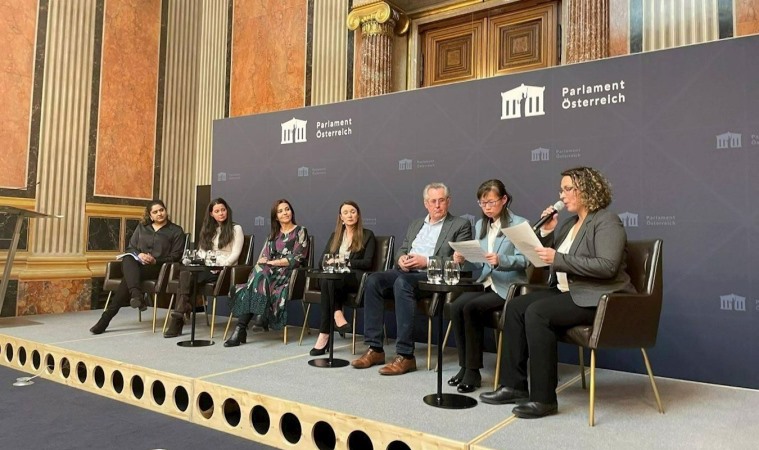 Trong lễ khai mạc sự kiện tại quốc hội Áo, cô Triệu Lệ Quân được mời tham dự với tư cách là nhân chứng trực tiếp của nạn lao động cưỡng bức tại Trung Quốc.