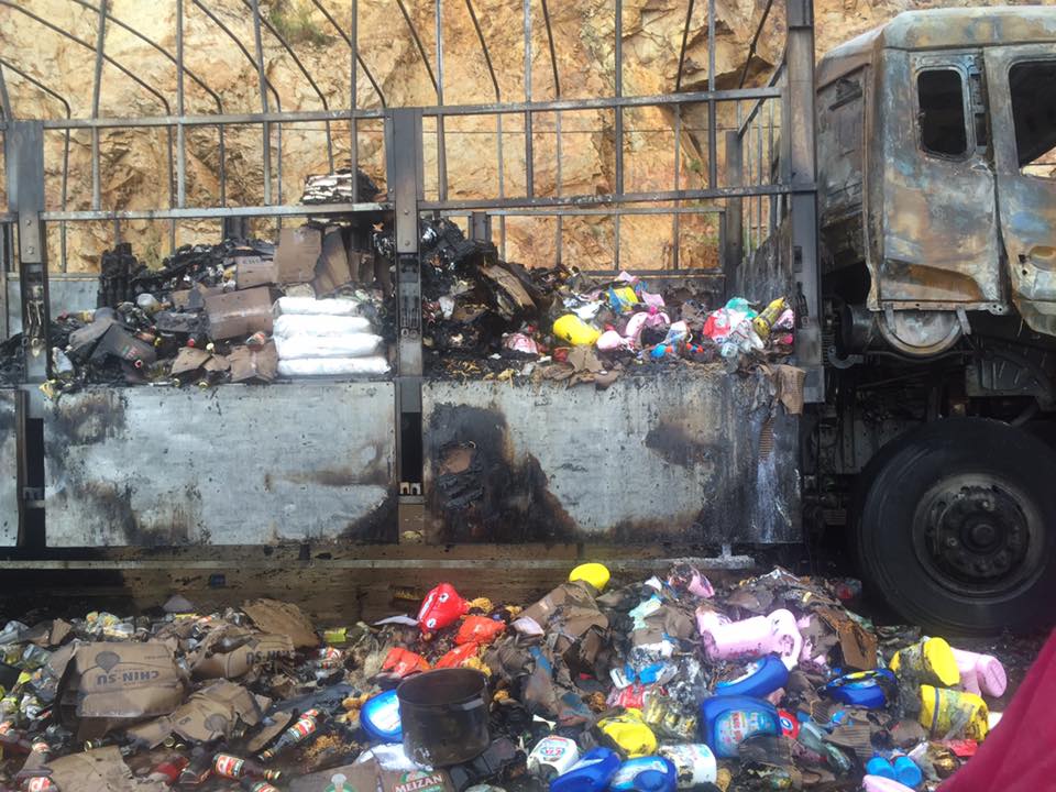 Hàng chục người dân hôi của trên xe tải bốc cháy, mặc nhà xe khóc lóc van xin