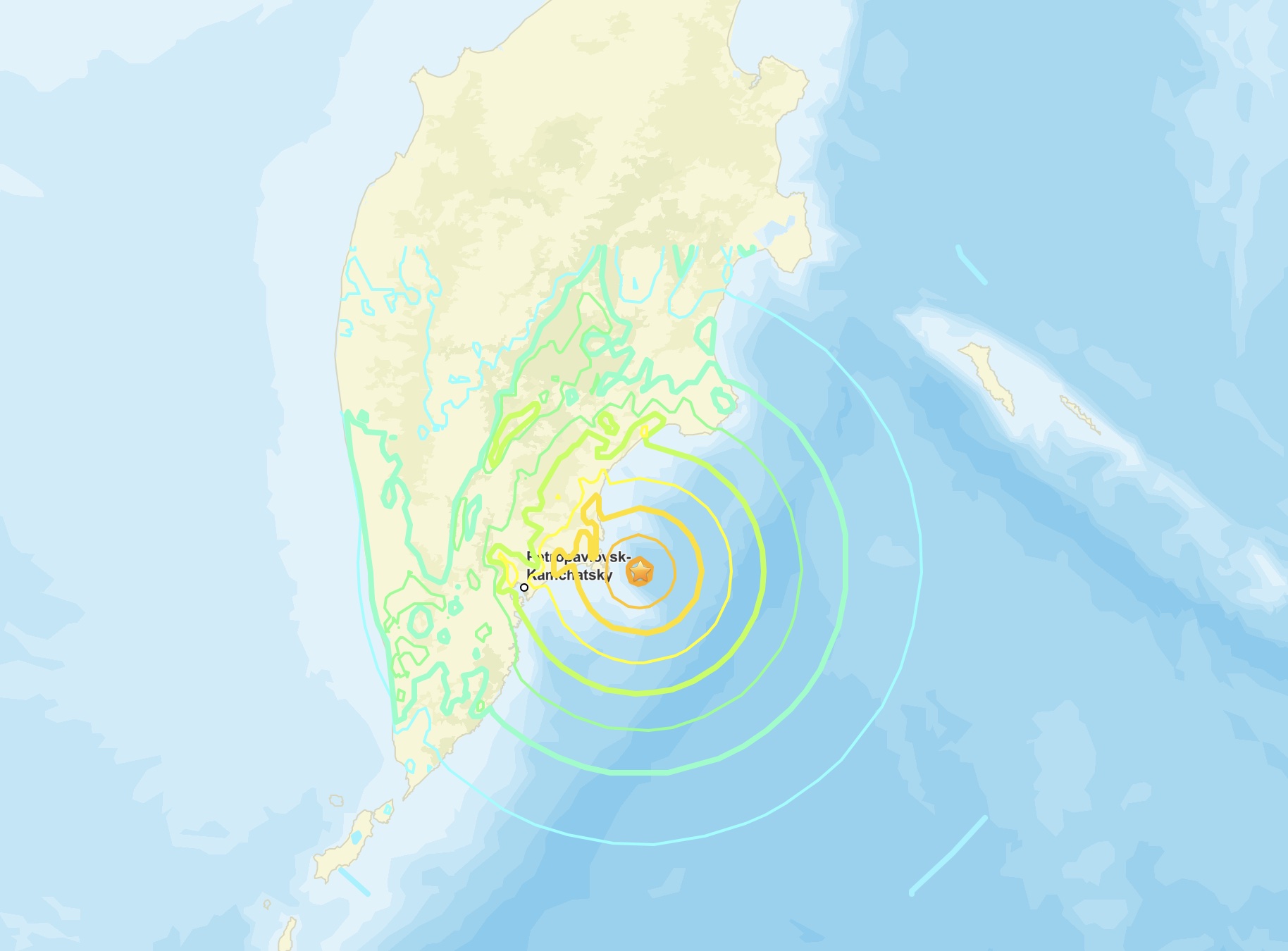 Một trận động đất mạnh xảy ra ngoài khơi bán đảo Kamchatka, Nga, ban đầu mạnh 7,5 độ richter, sau đó độ rung chấn đạt 8,7 độ, kích hoạt cảnh báo sóng thần.