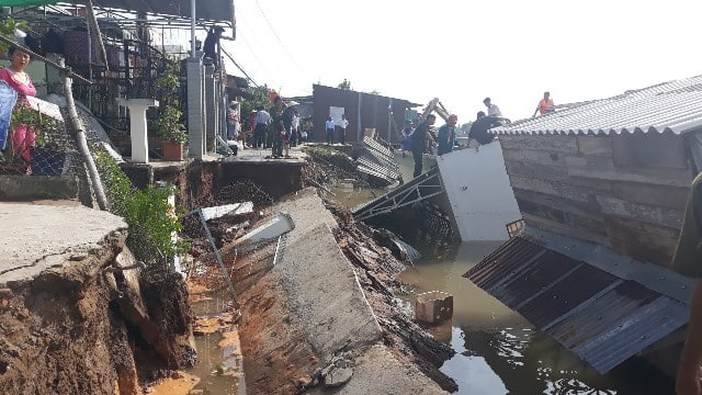 Sạt lở trong đêm tại Đồng Tháp, 5 căn nhà rơi xuống sông