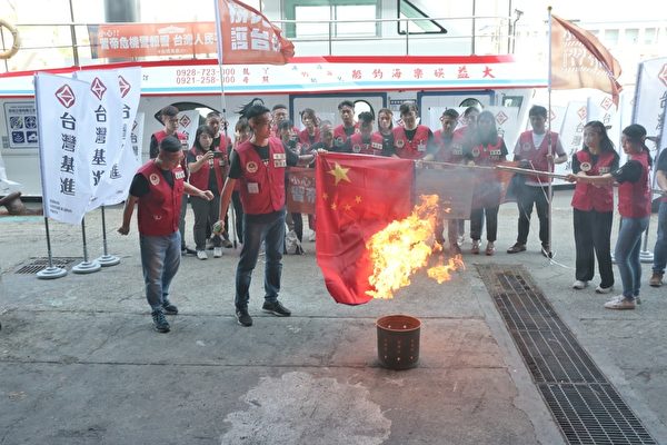 Thành viên Đảng Cơ tiến Đài Loan ra khơi đốt cờ 5 sao nhân Quốc khánh của ĐCSTQ
