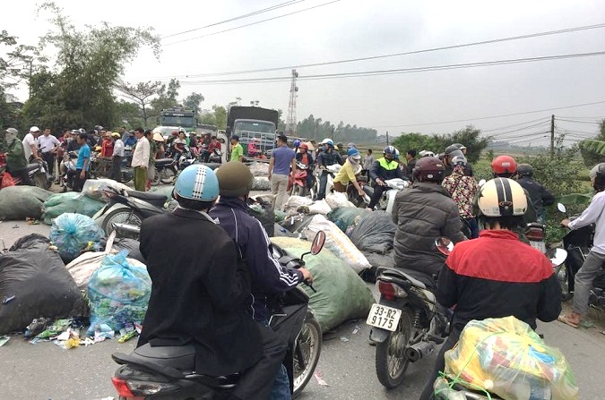Bức xúc vì mùi khét và khói phủ từ việc đốt phế liệu của người dân thôn Xà Cầu – làm nghề tái chế, người dân thôn Quảng Nguyên (cùng ở xã Quảng Phú Cầu, Ứng Hòa, Hà Nội) đã đổ rác thải ra quốc …