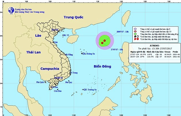 Bão số 4 suy yếu thành áp thấp nhiệt đới. Hồi 16h ngày 25/7, vị trí tâm áp thấp nhiệt đới ở vào khoảng 17,0 độ vĩ Bắc; 106,8 độ kinh Đông, trên đất liền các tỉnh Quảng Bình – Quảng Trị. Sức gió mạnh …
