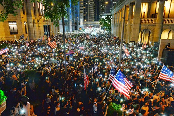 7 giờ tối ngày 14/7, tại Công viên Chater, 130.000 người dân Hồng Kông đã tổ chức hoạt động ủng hộ Mỹ xem xét Dự luật Nhân quyền và Dân chủ Hồng Kông.