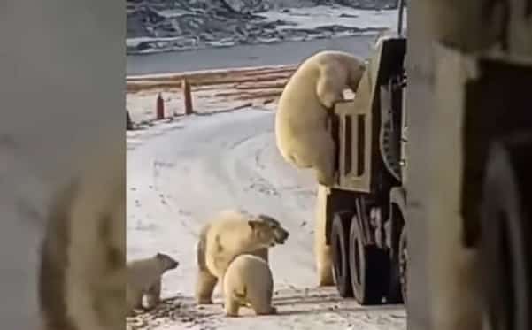 10 con gấu Bắc Cực bao vây xe chở rác ở Nga