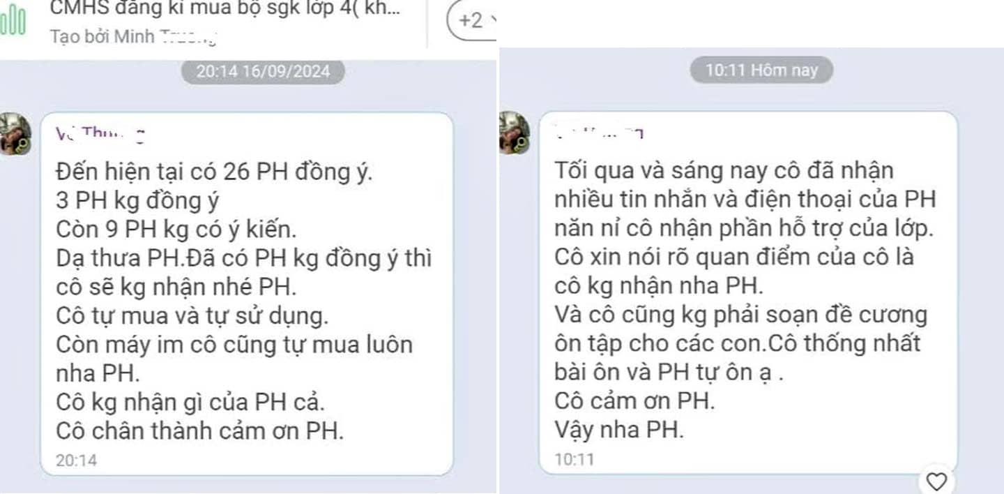 Nữ giáo viên chủ nhiệm lớp 4/3, kiêm khối trưởng khối 4 Trường Tiểu học Chương Dương (quận 1, TP.HCM) bị xác minh việc xin phụ huynh hỗ trợ mua laptop.