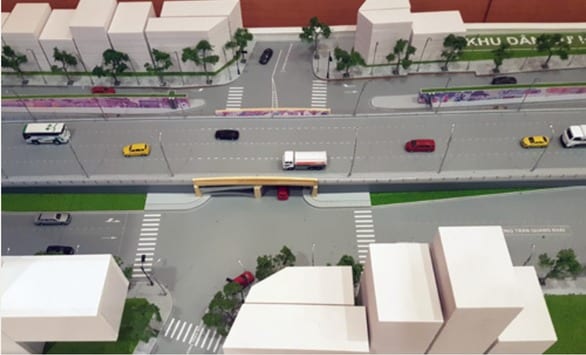 Hầm qua đê sông Hồng có kết cấu bê tông cốt thép, cao 3,2 m, dài 15,7 m, quy mô sử dụng đất khoảng 1,6 ha.