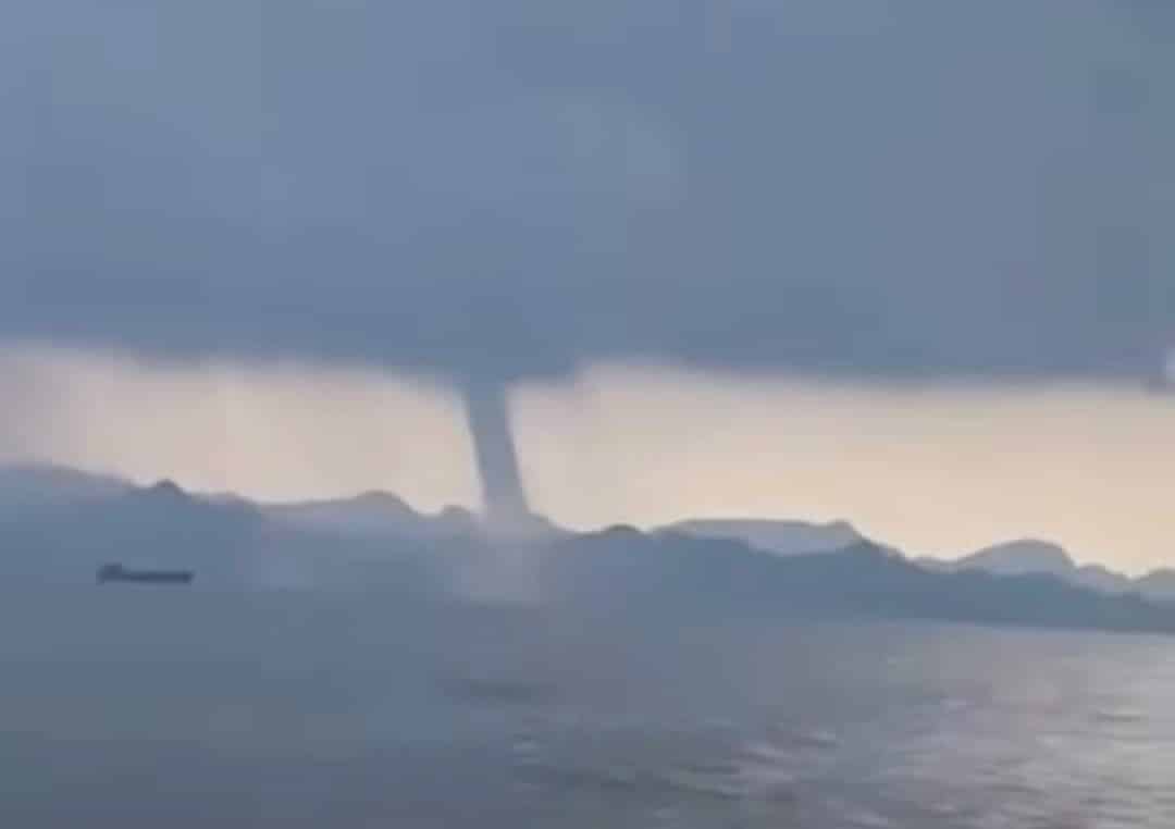 Vòi rồng cao hàng trăm mét xuất hiện trên biển ở Hải Phòng