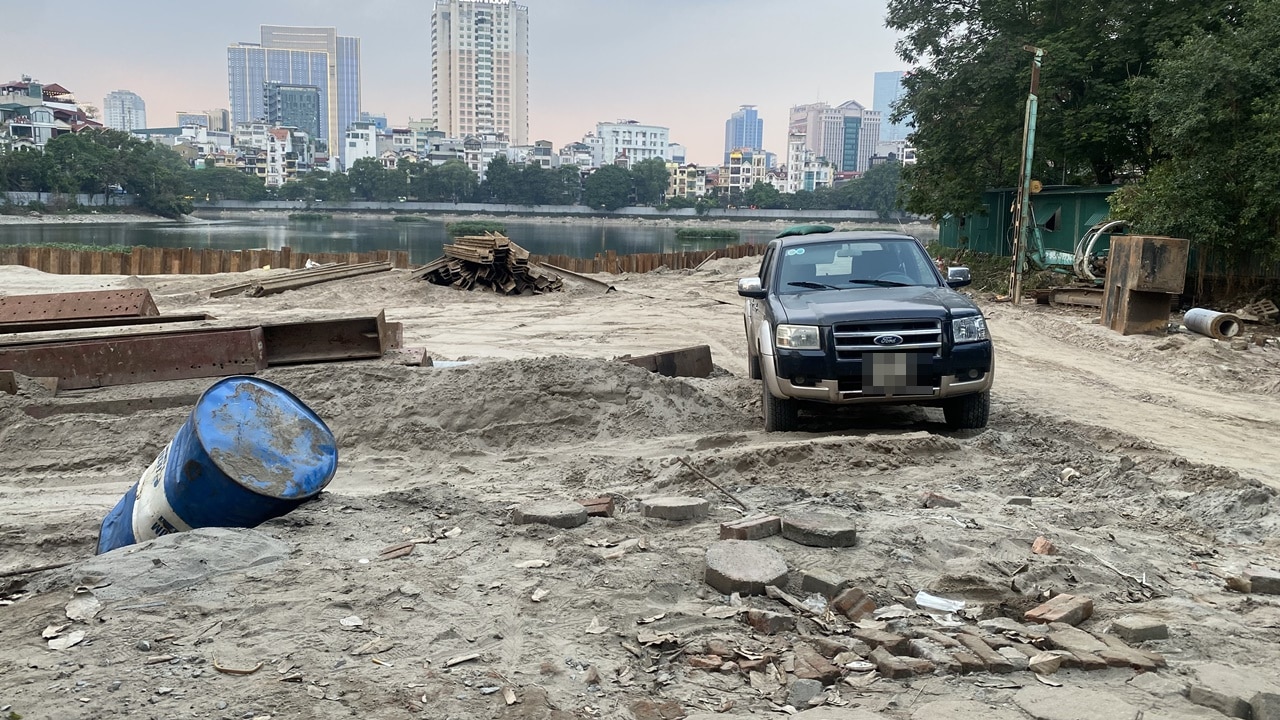 Hà Nội: Hồ Đống Đa bị ‘lấp tạm’ 6.500m2 làm bãi tập kết vật liệu