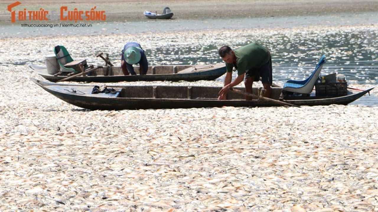 Hơn 100 tấn cá nuôi trên diện tích mặt nước gần 197 ha, nay bị dồn vào khu vực khoảng 2 ha mặt nước. Nước cạn, thời tiết khô nóng khiến cá chết ngộp lượng…