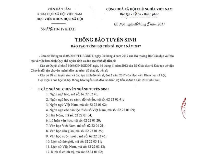 Thanh tra Bộ GD&ĐT chỉ ra hàng loạt sai phạm trong đào tạo tiến sĩ, thạc sĩ tại Học viện Khoa học xã hội, Viện Hàn lâm khoa học xã hội VN.