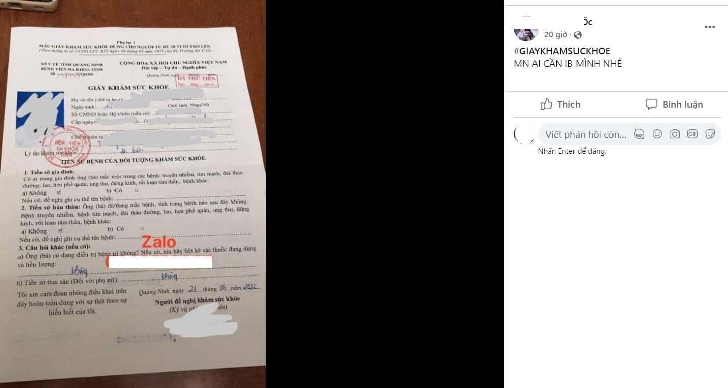 Người phụ nữ ở Quảng Ninh cùng người thân mua Giấy khám sức khỏe giả trên mạng sau đó bán lại để kiếm lời.