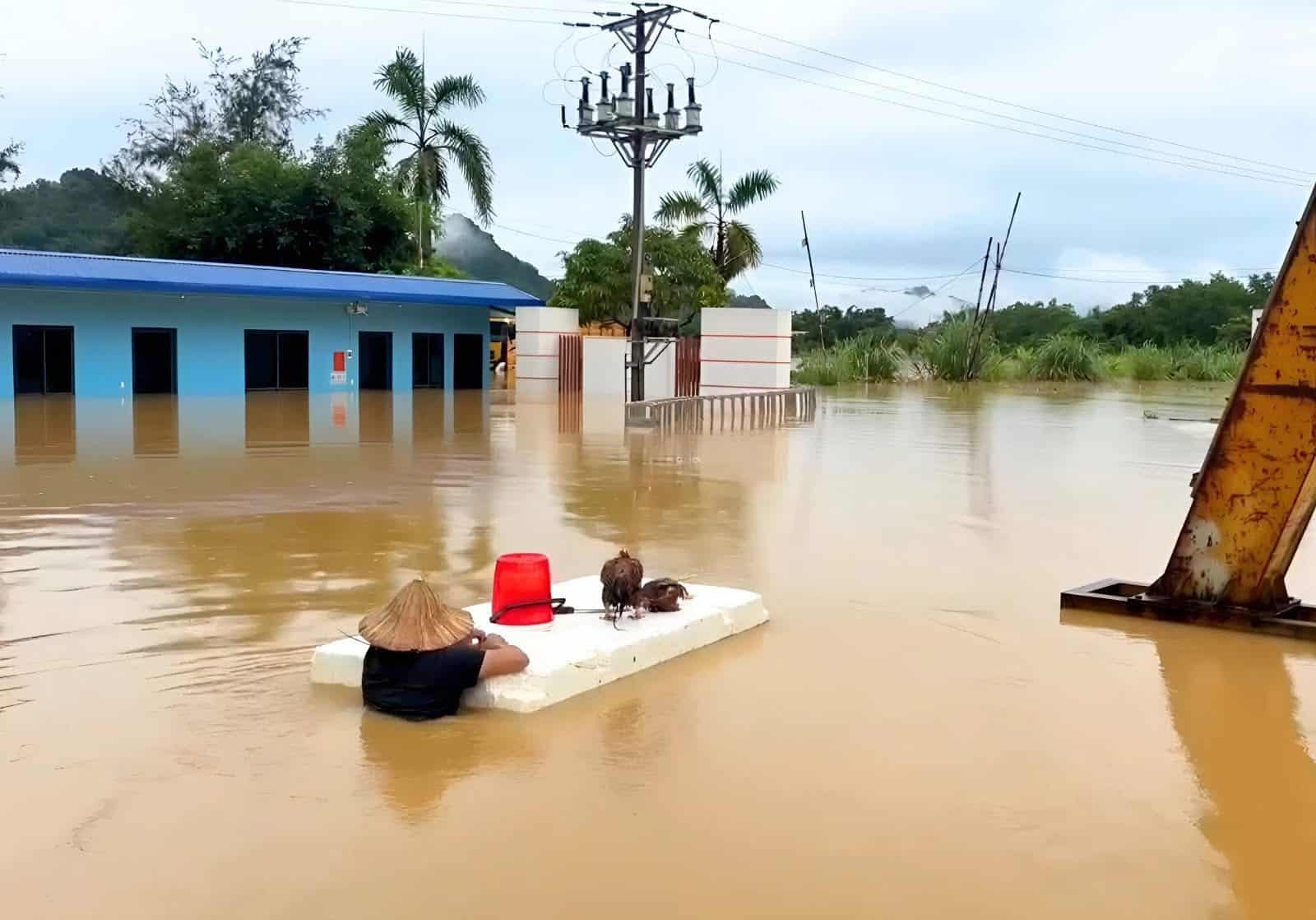 Trung Quốc: Quảng Tây mưa cực lớn, đường phố ngập sâu, xe cộ chìm trong nước