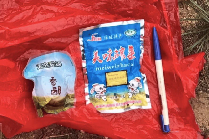 Gói hàng được tìm thấy trên Lieyu bao gồm một gói trà Trung Quốc và một gói zha-cai, một loại rau ngâm kiểu Tứ Xuyên.