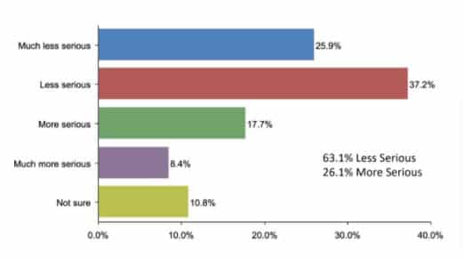 Một cuộc thăm dò mới do tổ chức The Trafalgar Group thực hiện cho thấy đa số người Mỹ tin rằng mối đe dọa từ virus corona đang trở nên ít nghiêm trọng hơn.