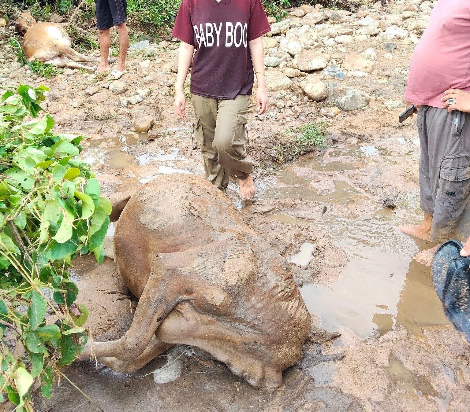 Lũ dâng đột ngột khiến khiến trâu bò chết ngổn ngang bên bờ suối