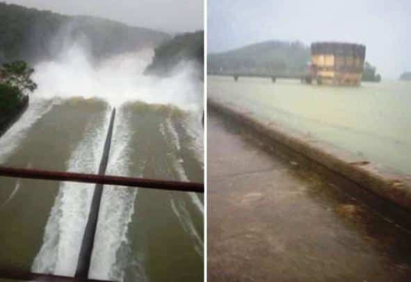 Do mưa lớn, lưu lượng nước về hồ Kẻ Gỗ (Hà Tĩnh) đang lên rất nhanh. Hiện hồ Kẻ Gỗ có nguy cơ vỡ đập chính.