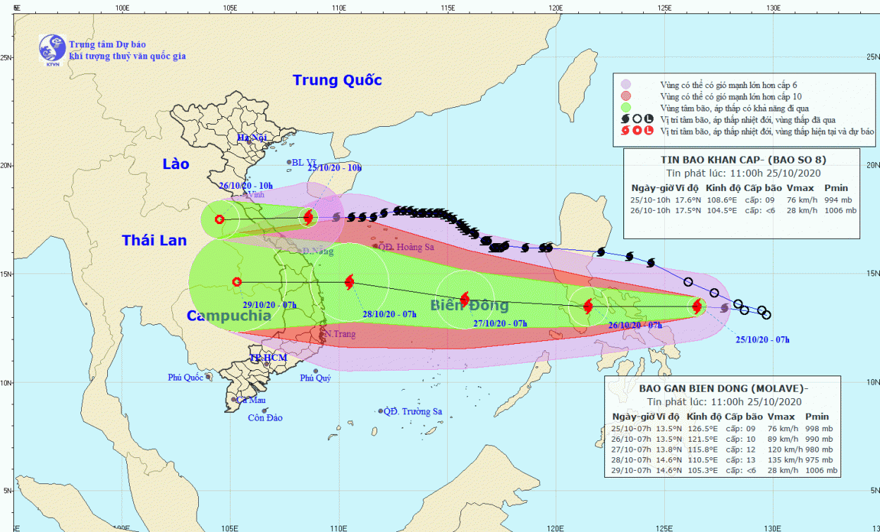 Liền sau bão số 8, nguy cơ lớn đến từ bão Molave (bão số 9) với sức gió giật tới cấp 15, bán kính rất rộng, khả năng đổ bộ vào miền Trung từ ngày 28/10.
