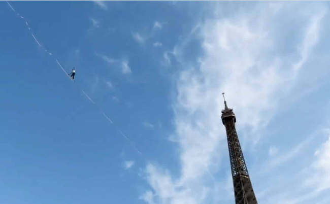 Nín thở với màn đi dây thăng bằng qua tháp Eiffel