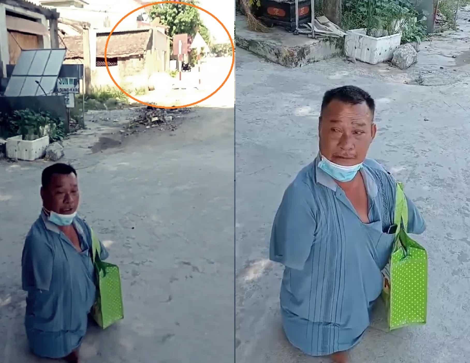 Tại Nghệ An, một người đàn ông khuyết tật cả tay lẫn chân đợi xe buýt dưới trời nắng nóng 2 tiếng đồng hồ, cả 4 chuyến xe buýt đều đi qua.