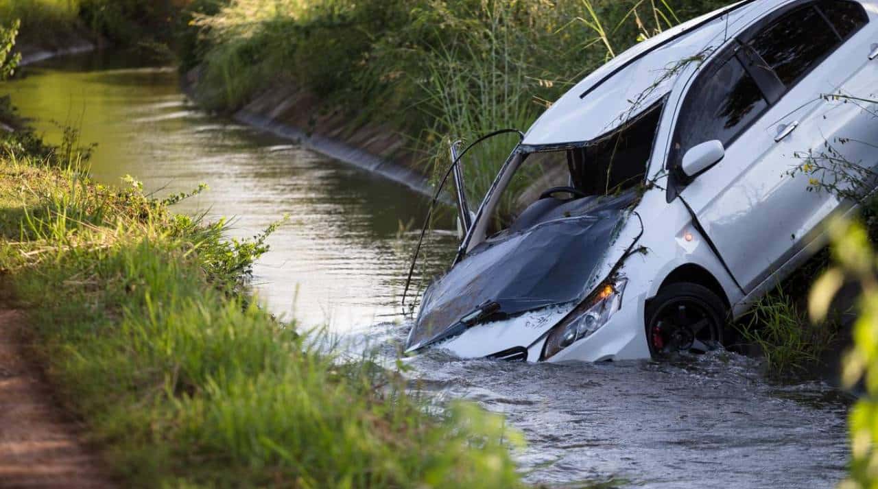 Chiếc xe hoàn toàn chìm trong dòng nước chảy xiết, có thể bị cuốn trôi bất cứ lúc nào. Trong khoảnh khắc ngàn cân treo sợi tóc, một người đàn ông làm việc gần đó…