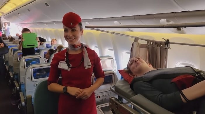 Nhờ sự ưu ái từ một hãng hàng không mà cô gái có chiều cao 2,3 mét đã có thể thực hiện chuyến đi máy bay đầu tiên trong đời.